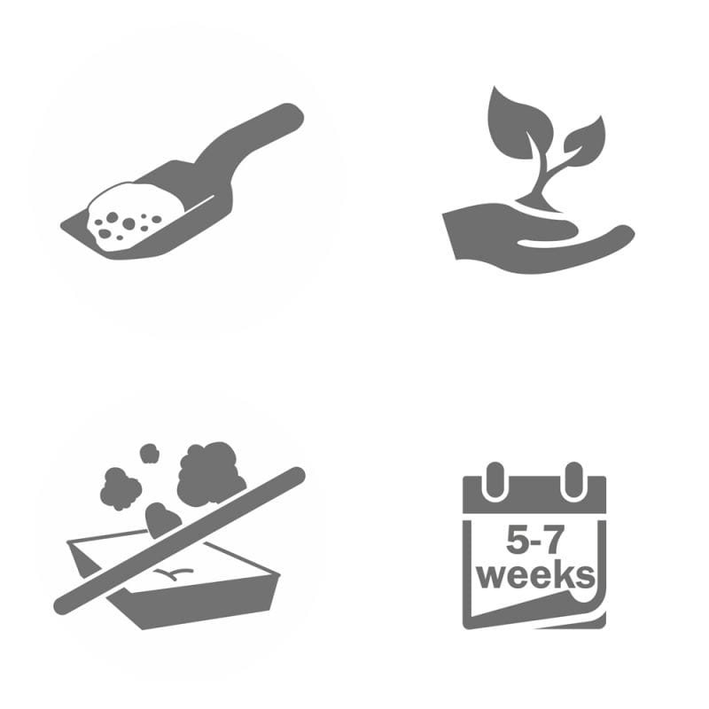 - 100% biodegradowalny i nadający się na kompost: pojedyncze grudki nadają się do zutylizowania w toalecie lub pojemniku na odpady organiczne