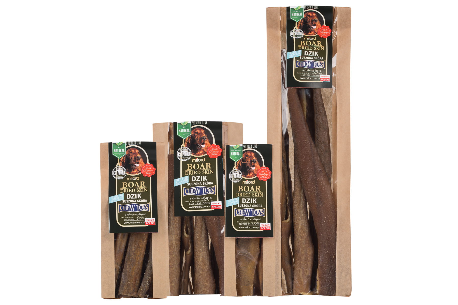 Wybierz MILORD Przysmak dla Psa Skóra z Dzika - gryzaki, które łączą w sobie twardość, smak i troskę o zdrowie Twojego pupila.