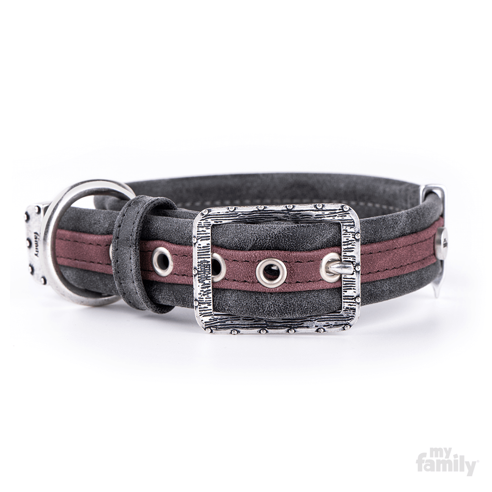 MyFamily LONDON Obroża EkoSkóra Bordowa M+ 1045