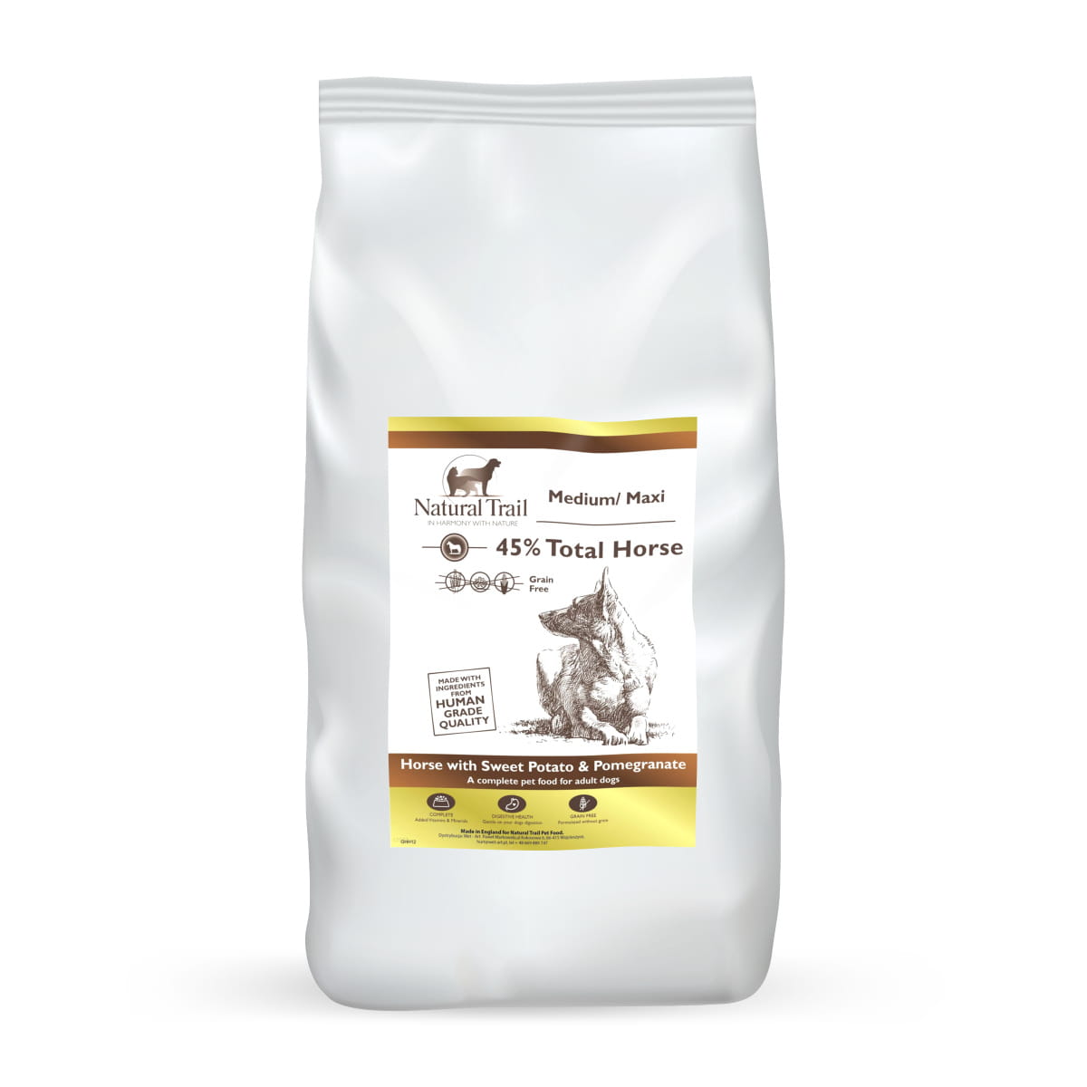 Natural Trail Horse 45% Medium Breed, karma przygotowana wyłącznie z koniny dla dorosłych psów.
