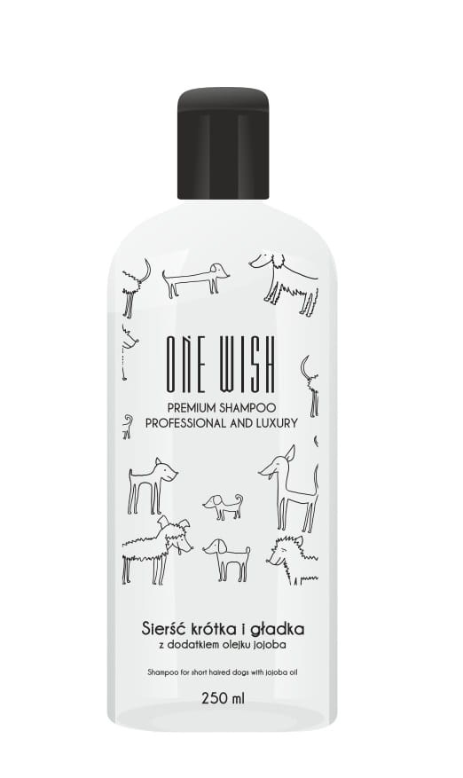 Profesjonalny szampon pielęgnacyjny dla psów o sierści krótkiej i gładkiej z dodatkiem olejku jojoba. Posiada on niezwykłe właściwości, zawiera m.in.: witaminę A, F, E, nawilża i odżywia włosy, a także zmiękcza i natłuszcza skórę. Skutecznie usuwa zanieczyszczenia, nie naruszając bariery ochronnej skóry. Charakteryzuje się doskonałymi właściwościami myjącymi i przede wszystkim podtrzymuje naturalną sztywność włosa. W konsekwencji włosy są w doskonałej kondycji, posiadają naturalny połysk i zdrowy wygląd. Nie zawiera sztucznych barwników. Posiada delikatną nutę zapachową.