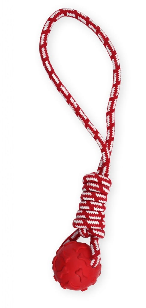 DOG LIFE STYLE Piłka na sznurze 40cm do przeciągania czerwona, aromat mięta.