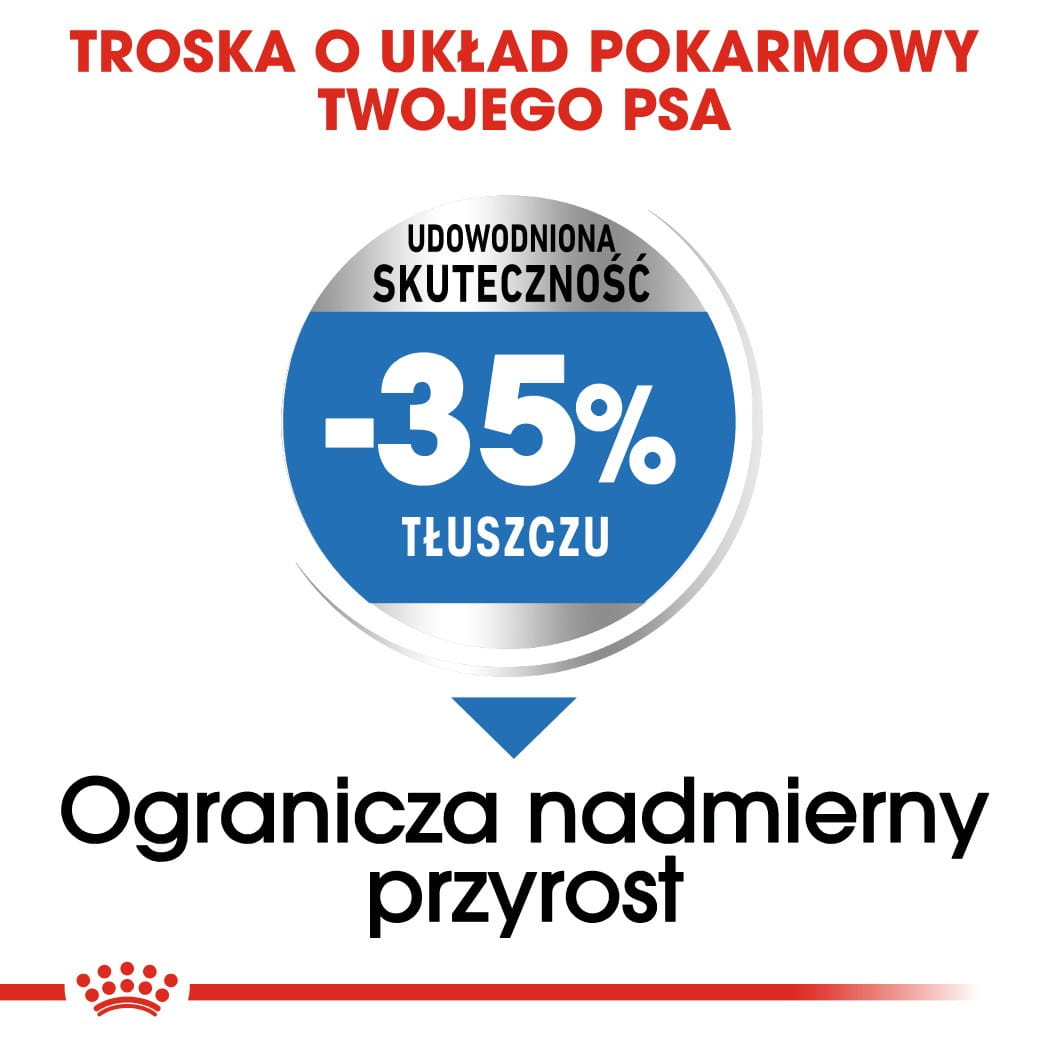 W celu zapewnienia prawidłowego pasażu jelitowego i wspomagania uczucia sytości, karma ROYAL CANIN® Light Weight Care Maxi zawiera optymalną kombinację rozpuszczalnego i nierozpuszczalnego włókna pokarmowego.