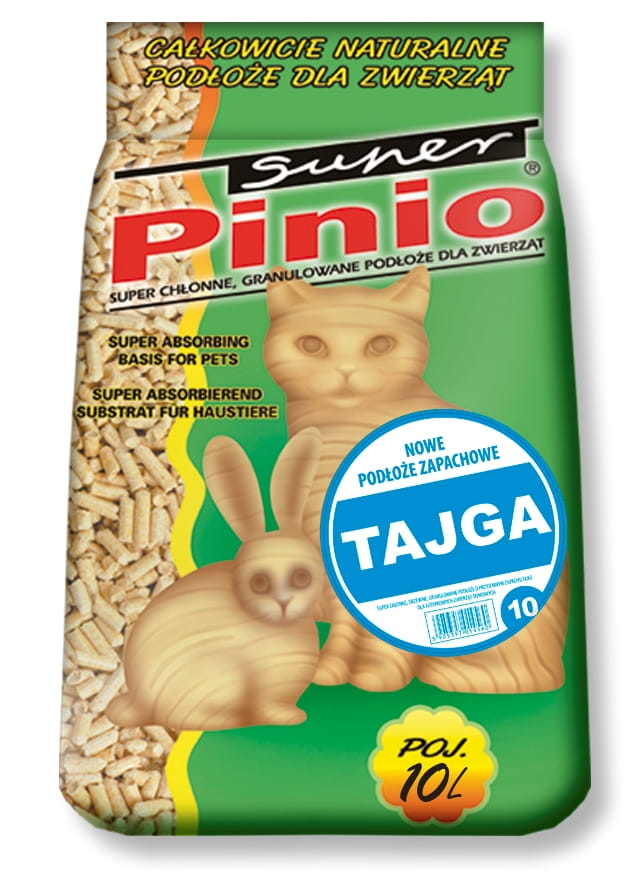 Super Pinio Tajga to żwirek wykonany w 100% z naturalnego drewna drzew iglastych. Produkowany na bazie naturalnego surowca, bez żadnych dodatków chemicznych. Posiada bardzo wysoką wchłanialność oraz doskonale wiąże zapachy. Zużyte granulki nie zbrylają się, lecz rozpadają, pozwalając tym samym określić stan wyeksploatowania żwirku. Żwirek o delikatnym zapachu lasów tajgi. Zastosowana kompozycja wytwarza przyjemny zapach dając poczucie świeżości. W pełni przyjazny dla środowiska i dla zwierząt. Można go usuwać drogą sanitarną.