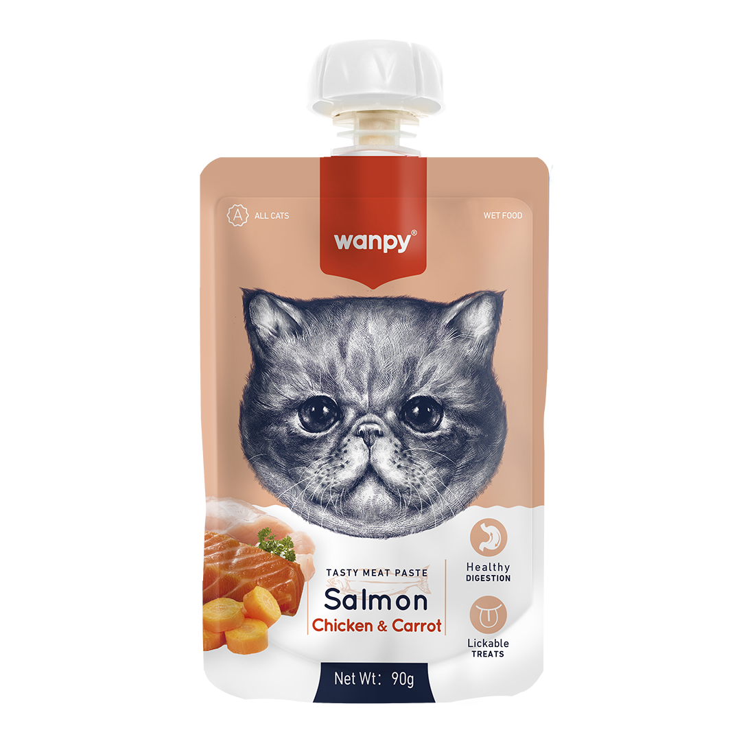 Wanpy dla kota - pasta dla kota: łosoś, kurczak, marchewka